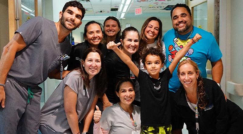 As Anna prayed in the hospital chapel, surgeons performed emergency neurosurgery to relieve the pressure on Matthew’s brain. Once stabilized, he was airlifted to Jackson Memorial Hospital, where neurosurgeons discovered a vascular lesion in his brainstem. On October 4, Adib Abla, MD, chief of cranial neurosurgery at Jackson Memorial and his team successfully removed it.